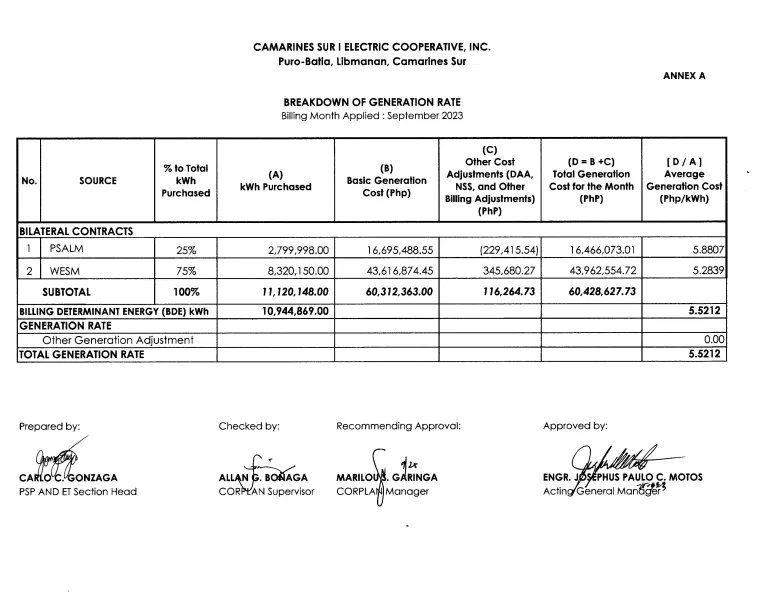 BREAKDOWN OF GENERATION RATE 2023
